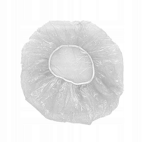 Foliowy czepek z gumką niezastąpiony przy pielęgnacji włosów. Przydatny także w sytuacji, gdy chcesz zachować higienę ubierając na głowę np. wypożyczony kask.