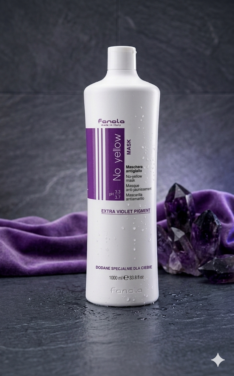 Fanola No Yellow to profesjonalna, włoska maska o pojemności 1000 ml, stworzona z myślą o pielęgnacji włosów blond – zarówno farbowanych, rozjaśnianych, z pasemkami, jak i siwych. Jej zaawansowana formuła oparta na fioletowym pigmencie skutecznie neutralizuje niepożądane żółte tony, przywracając chłodny, elegancki odcień włosów.