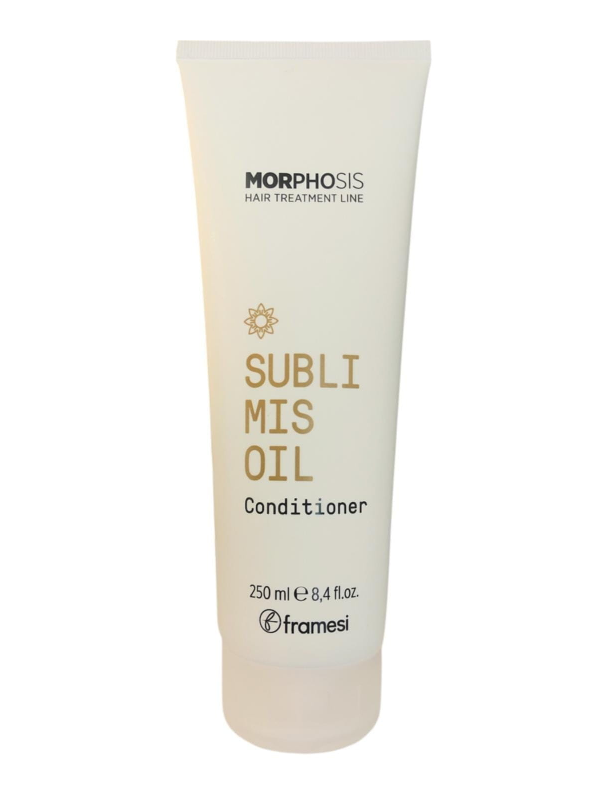 Framesi Morphosis Sublimis Oil Conditioner 250 ml - lekka odżywka przeznaczona do włosów normalnych i cienkich. Wnika głęboko we włókno włosa, nie obciążając fryzury. Zawiera olejek z męczennicy i olejek arganowy, które są znane ze swoich wyjątkowych właściwości gwarantujących nawilżone, błyszczące, mocne i łatwiejsze do rozczesania włosy. Formuła odżywki wzbogacona została również witaminą E, arganiną, wyciągiem z cytryny i molekułami roślinnymi chroniącymi łuskę włosów. Dzięki temu odżywka wzmacnia włosy, zapobiega rozdwajaniu się końcówek, chroni przed szkodliwym promieniowaniem UV i działaniem czynników zewnętrznych. Pomaga utrzymać równowagę pH skóry głowy. Zapobiega wypadaniu i łamaniu się włosów oraz sprawia, że są bardziej elastyczne i lśniące. Odżywka Framesi Morphosis Sublimis Oil sprawia, że włosy są nawilżone, odżywione, miękkie i błyszczące