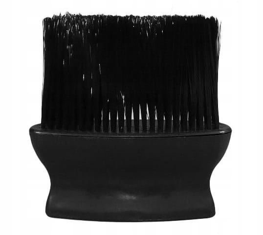 Plastikowa szczotka - karkówka ze sztucznymi, miękkimi, jasnymi włosami. Służy do usuwania ciętych włosów z twarzy i szyi klienta.