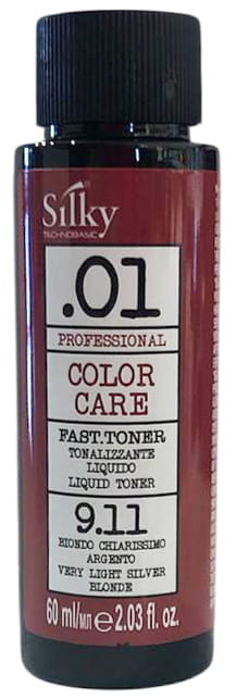 Silky .01 Color Care Fast Toner 9.11 to wielofunkcyjna, półtrwała farba tonująca w płynie, stworzona do odświeżania, korygowania lub tonowania koloru włosów, pozostawiając je miękkimi i lśniącymi.