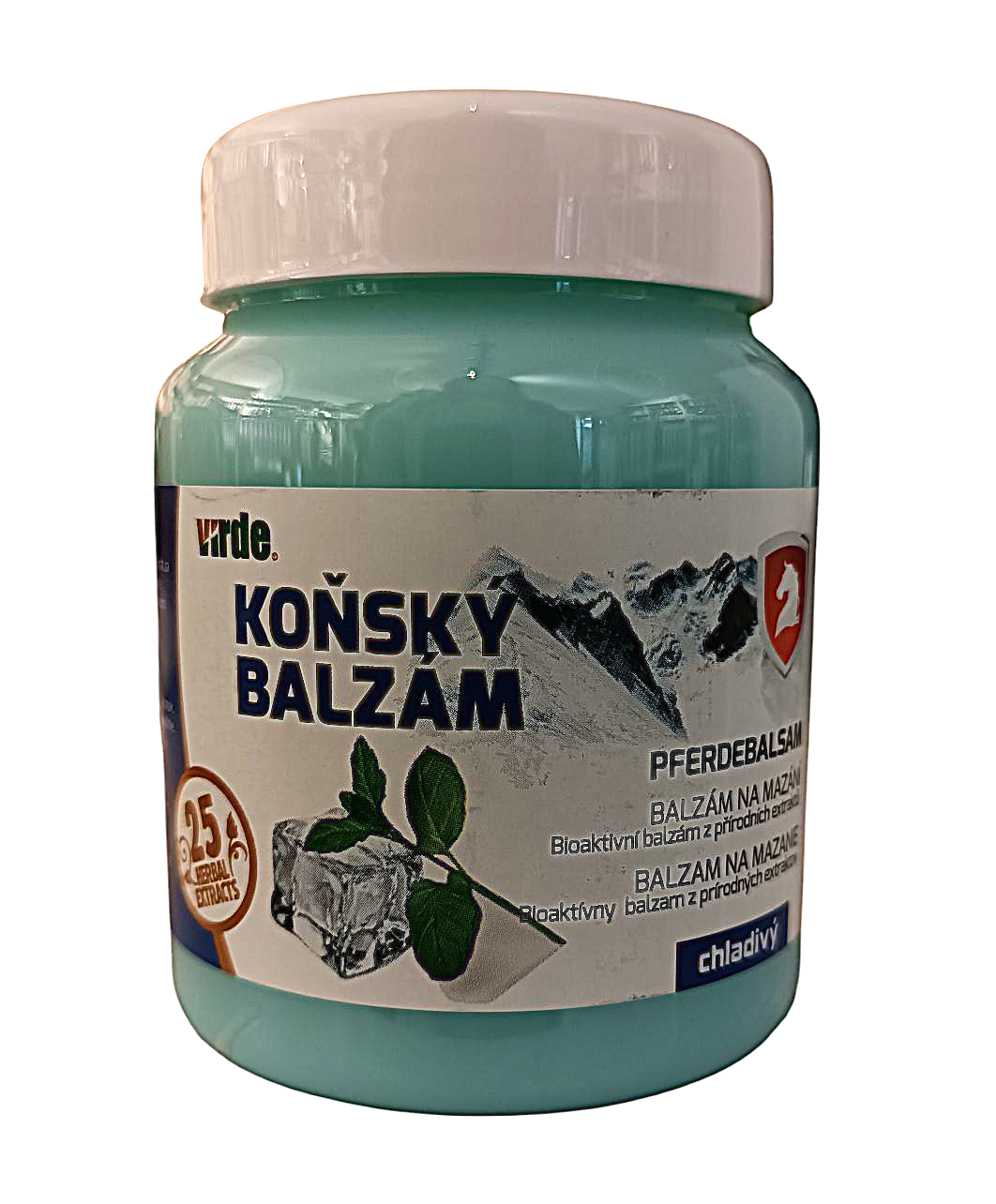 VIRDE KOŃSKY BALZAM CHLADIVY 25 HERBAL EXTRACTS 350g to tradycyjny balsam na bazie naturalnych składników, który łączy właściwości hydratacyjne żelu z dobroczynnym działaniem olejków eterycznych oraz ekstraktów ziołowych. Produkt charakteryzuje się działaniem chłodzącym, co zapewnia uczucie ulgi oraz odprężenia, zwłaszcza po wysiłku fizycznym.